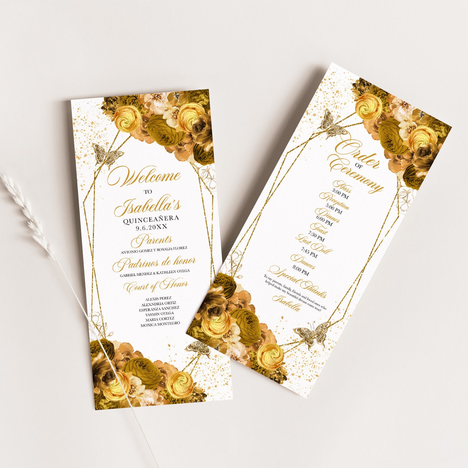 EDITABLE Program Template Elegant Gold Floral Quinceanera Etsy