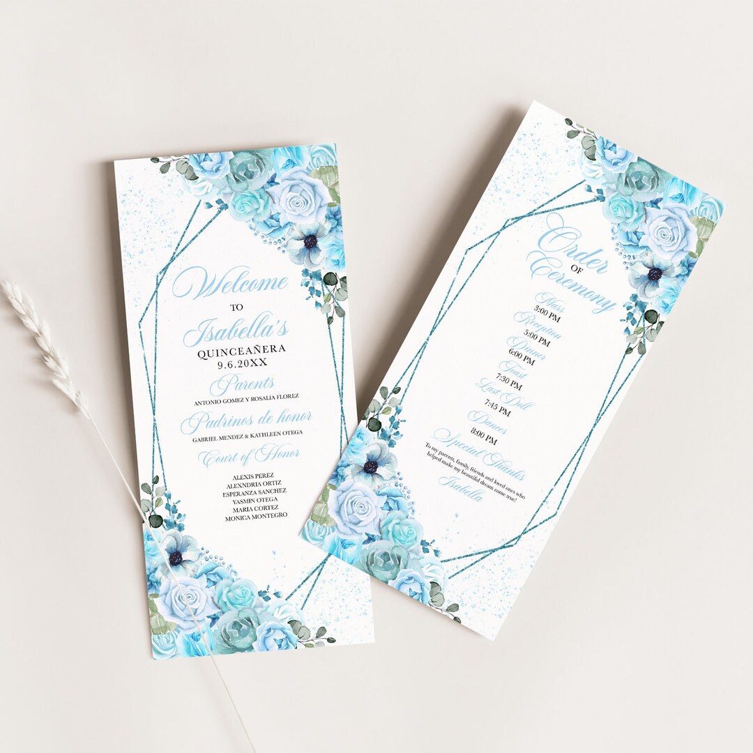 EDITABLE Program Template Elegant Sky Blue Floral Quinceanera Etsy