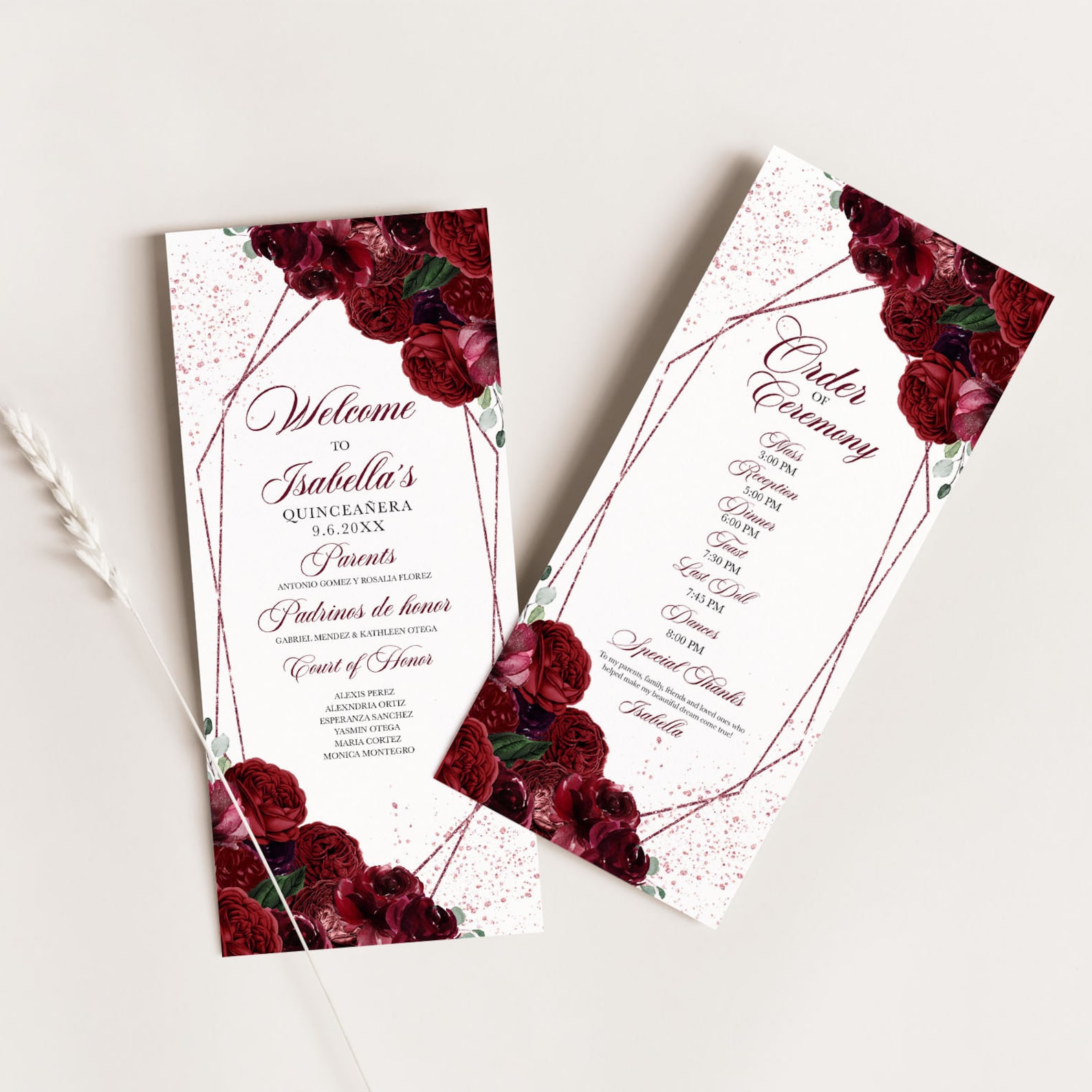 EDITABLE Program Template Elegant Burgundy Floral Quinceanera Etsy