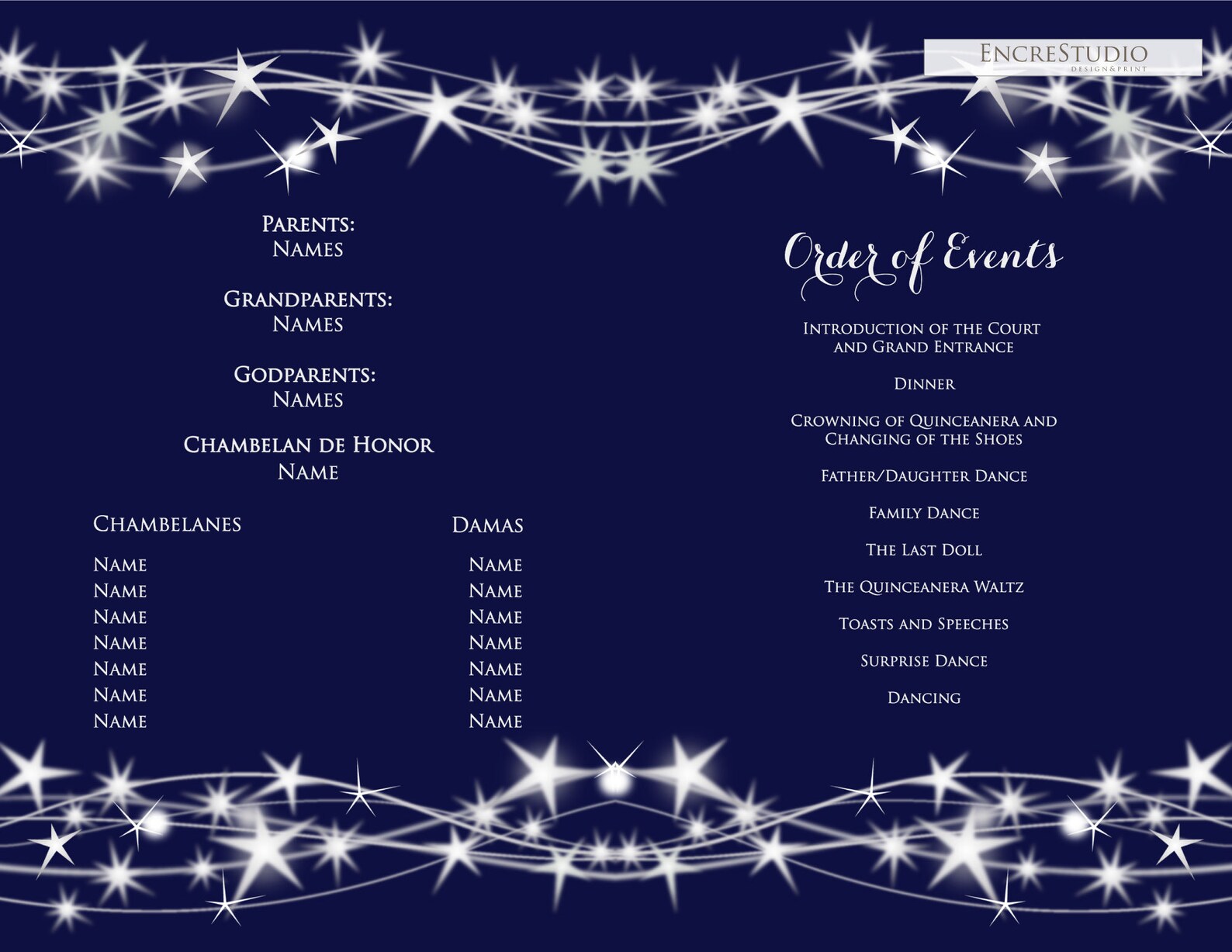 Editable Quinceanera Program Template Encre Studio