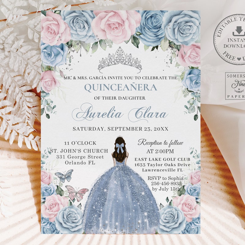 Editable Quinceañera Blue Quince Invitation in 2025 Invitations