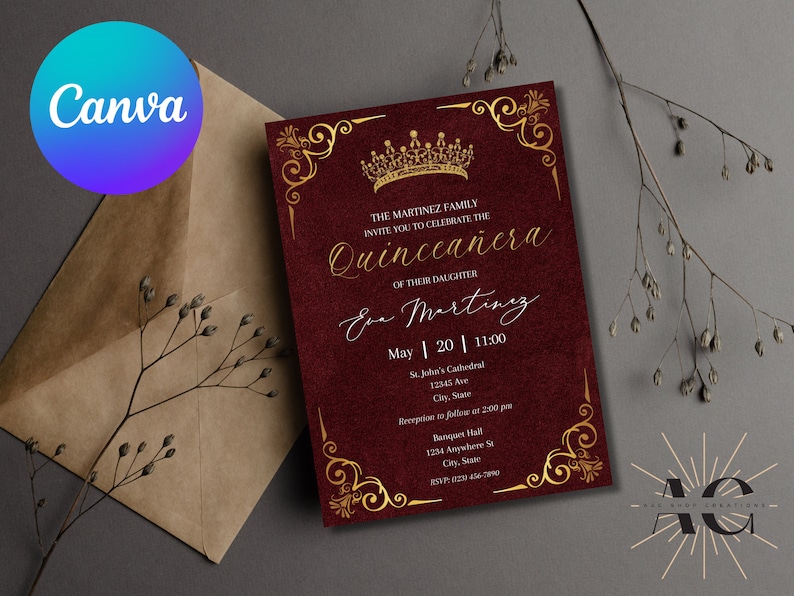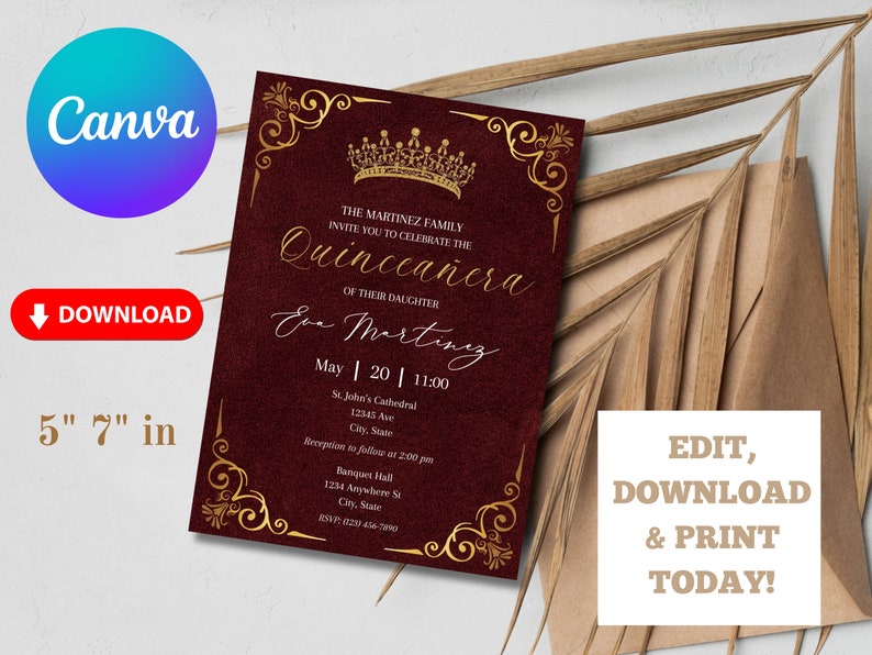 Red and Gold Quinceañera Invitation Template (digital Download) Etsy
