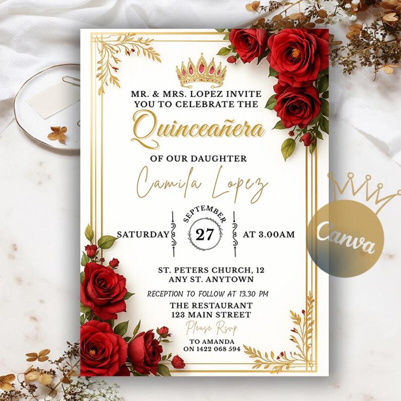Quinceanera Invitations Red and Gold Printable Etsy UK