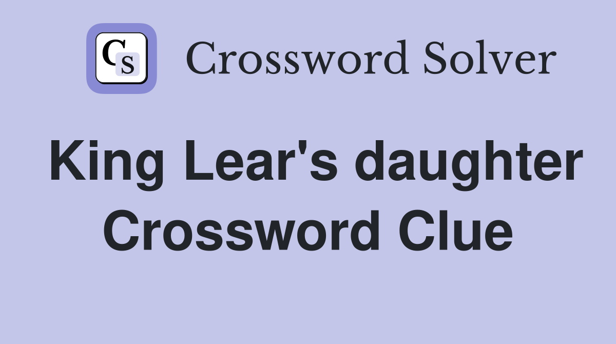 King Lear #39 s daughter Crossword Clue Answers Crossword Solver