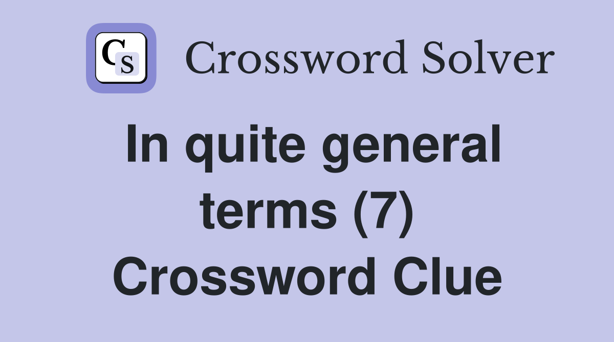 In quite general terms (7) Crossword Clue Answers Crossword Solver