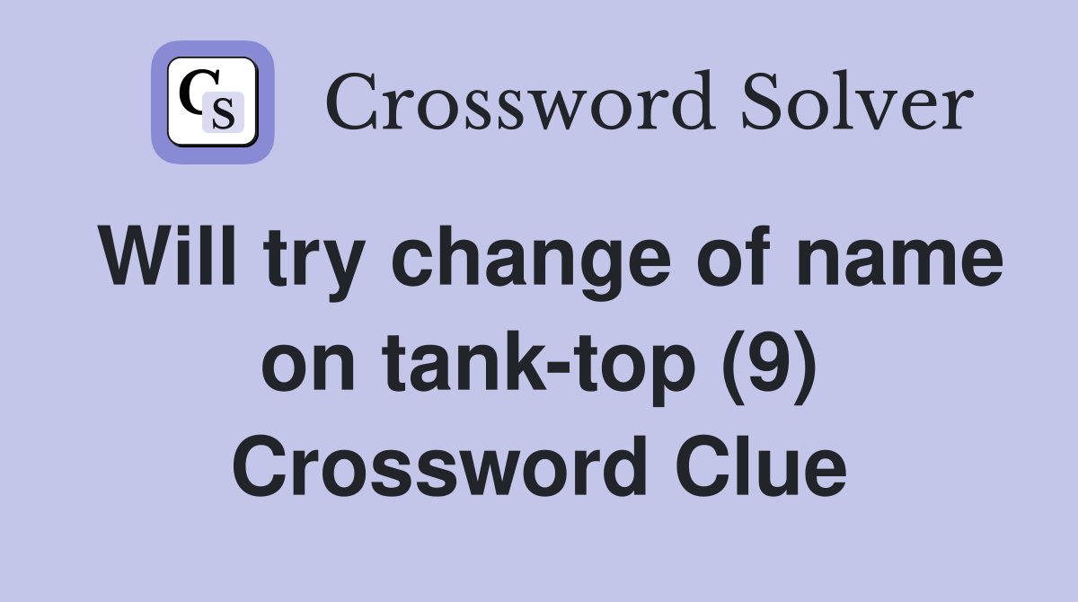 Will try change of name on tank top (9) Crossword Clue Answers