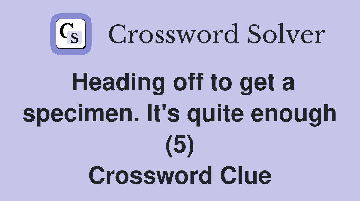 Heading off to get a specimen It #39 s quite enough (5) Crossword Clue