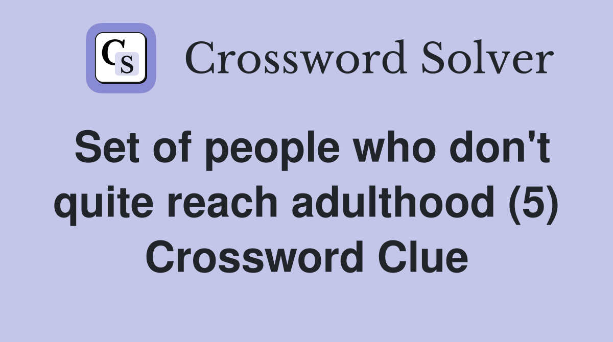 Set of people who don #39 t quite reach adulthood (5) Crossword Clue