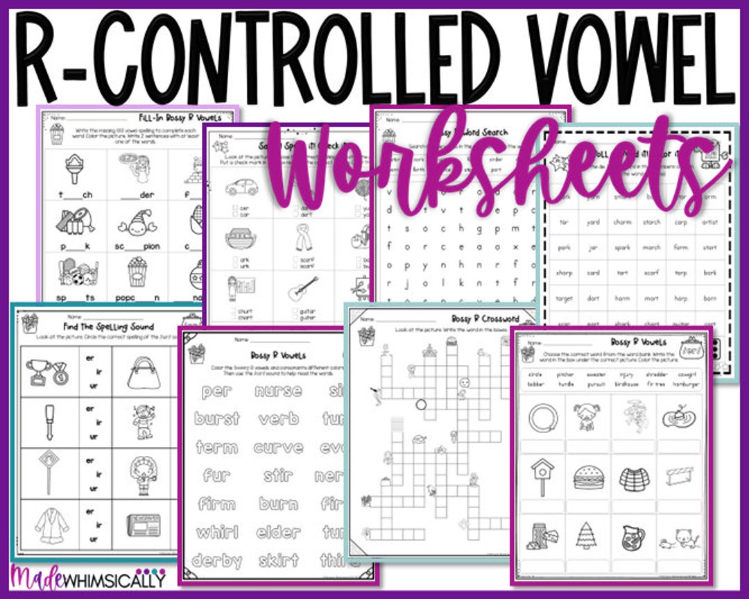 R Controlled Vowel Worksheets Printable Phonics Practice for First
