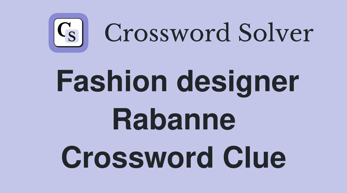 Fashion designer Rabanne Crossword Clue Answers Crossword Solver