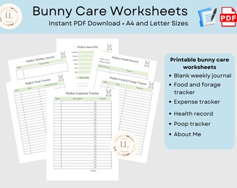 Rabbit Record Keeping Bundle Printable PDF Rabbit Care Sheet Bunny