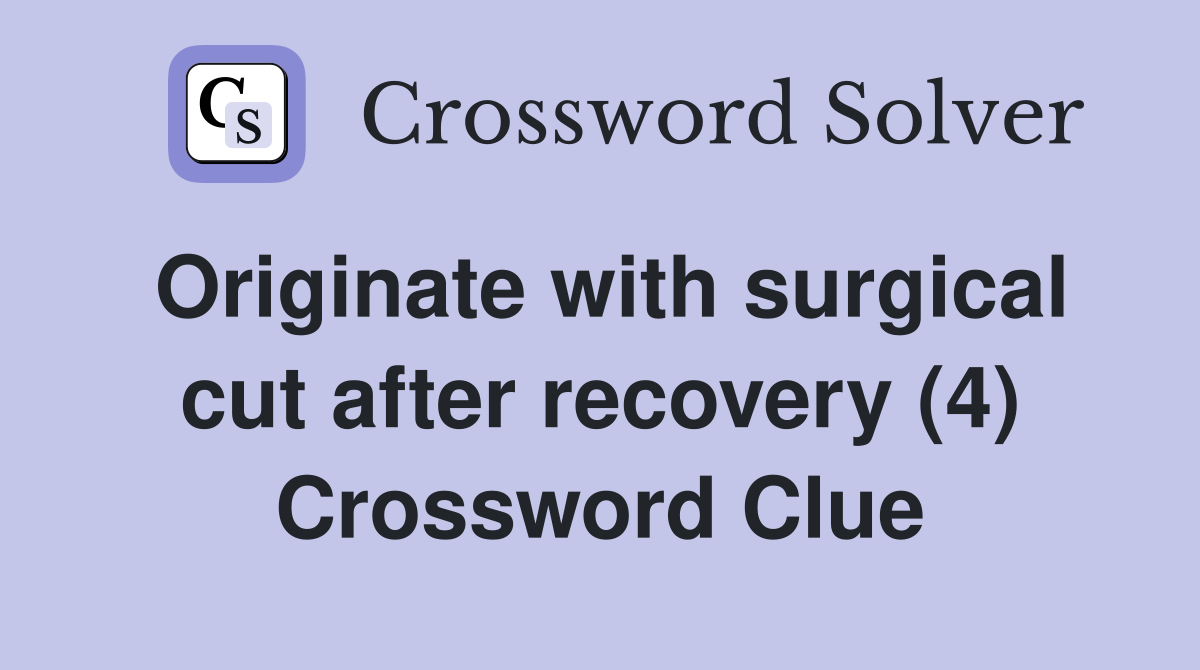 Originate with surgical cut after recovery (4) Crossword Clue Answers
