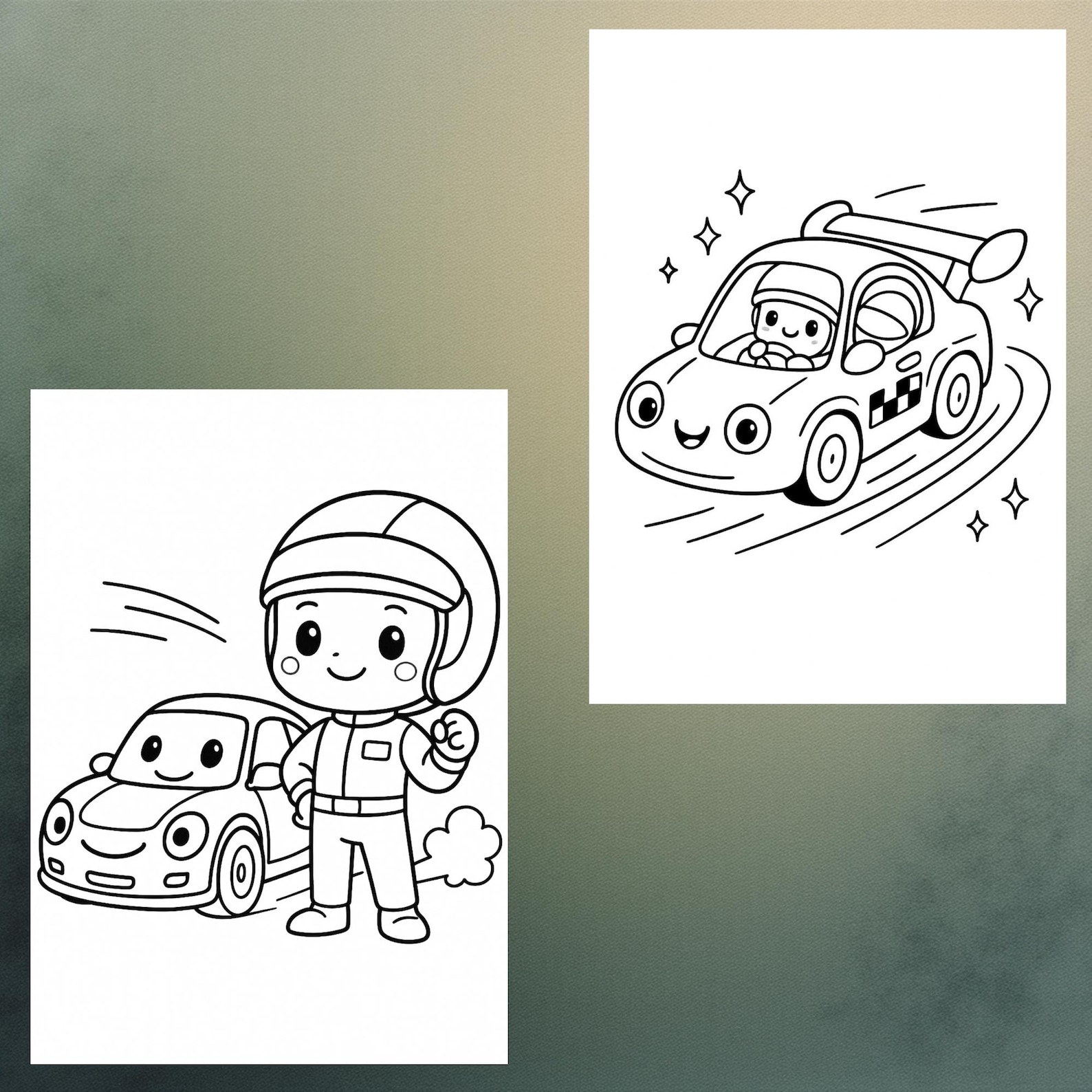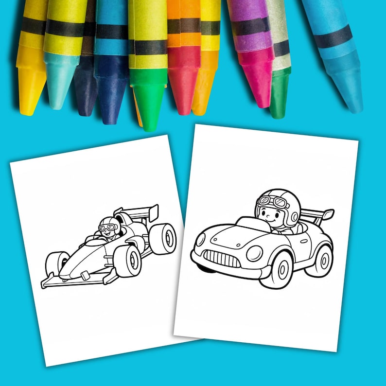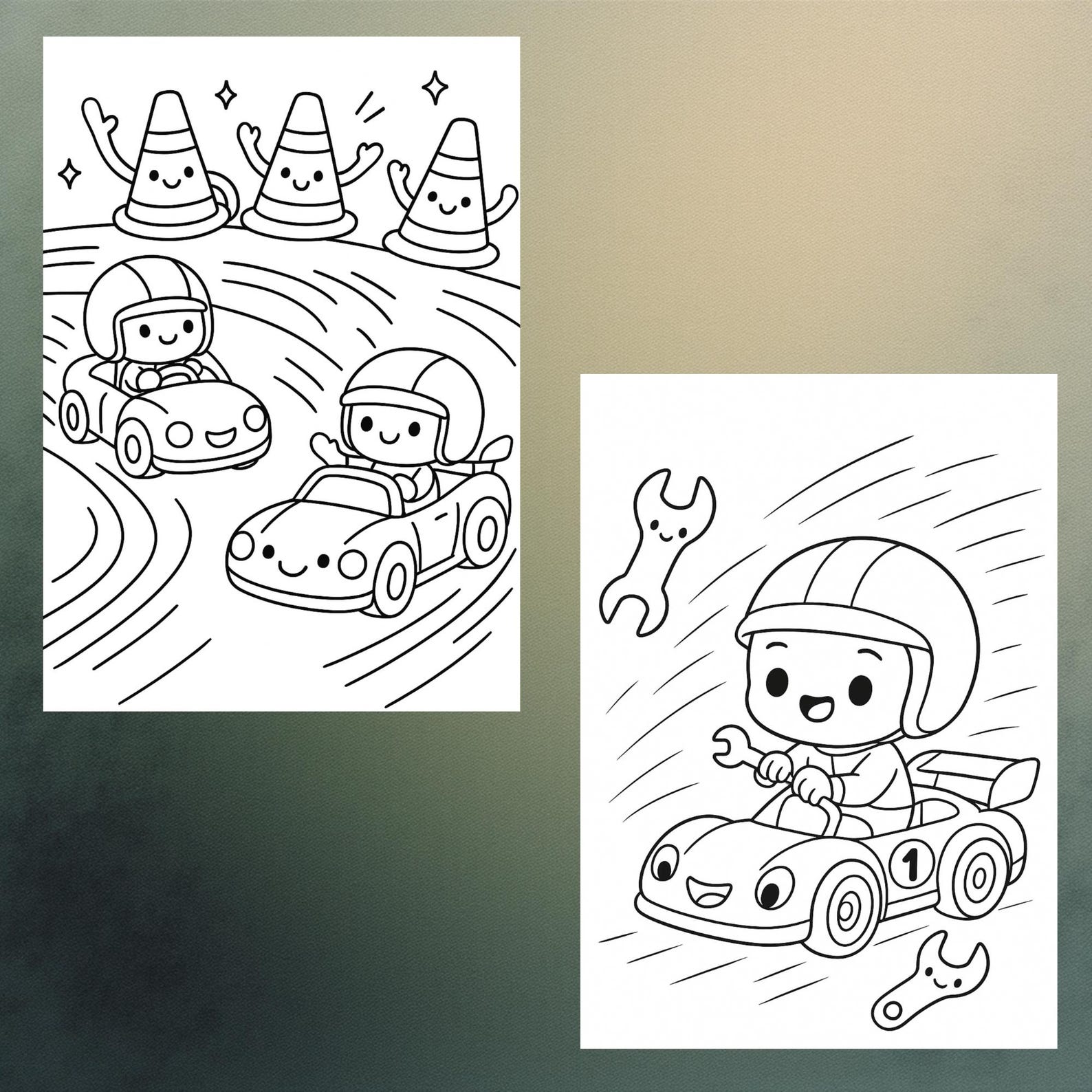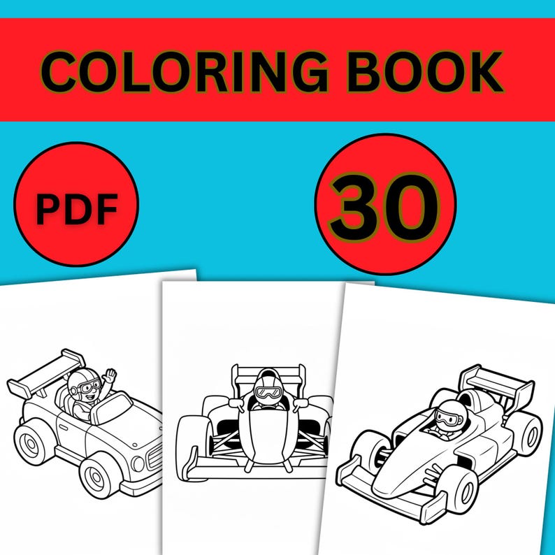 Race Car Coloring Book Pdf • 20 Pages Easy Line Art for Kids • Simple