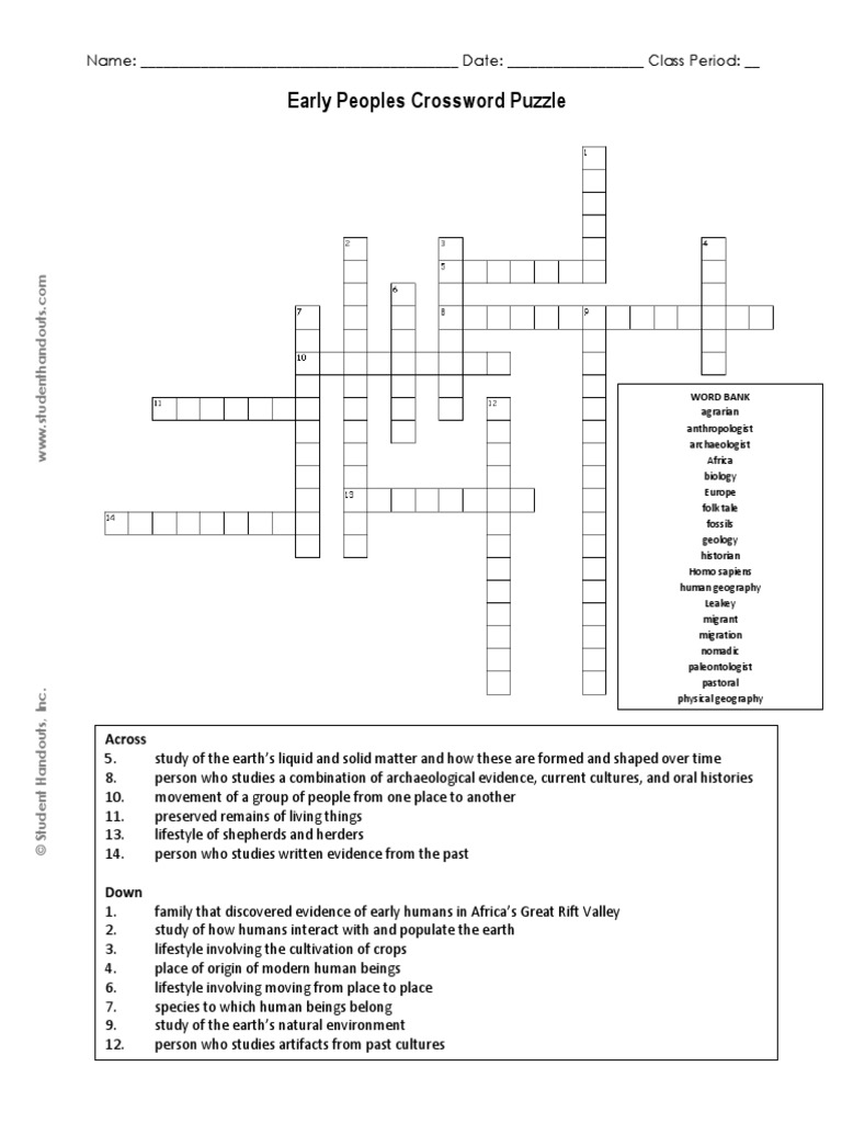 Early Peoples Crossword Puzzle: Across PDF Homo Human
