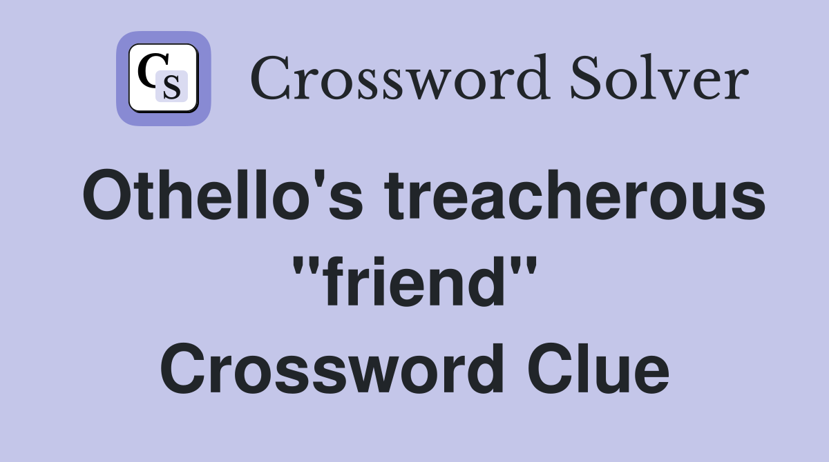 Othello #39 s treacherous quot friend quot Crossword Clue Answers Crossword Solver
