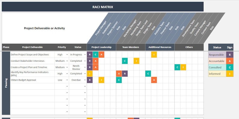 RACI Matrix Template with 3 Formats Excel Google Sheets Compatible