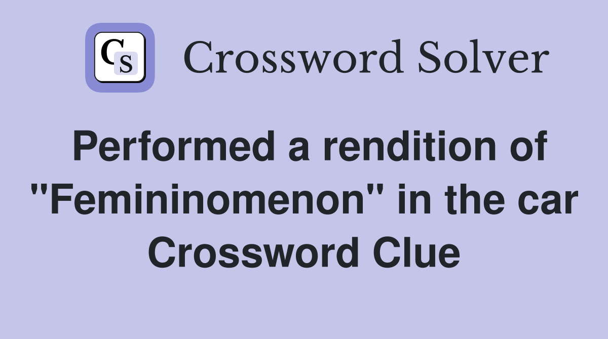 Performed a rendition of quot Femininomenon quot in the car Crossword Clue