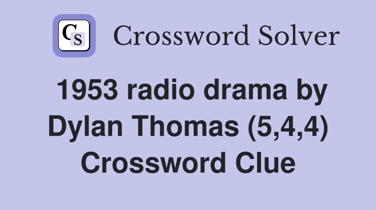 1953 radio drama by Dylan Thomas (5 4 4) Crossword Clue Answers