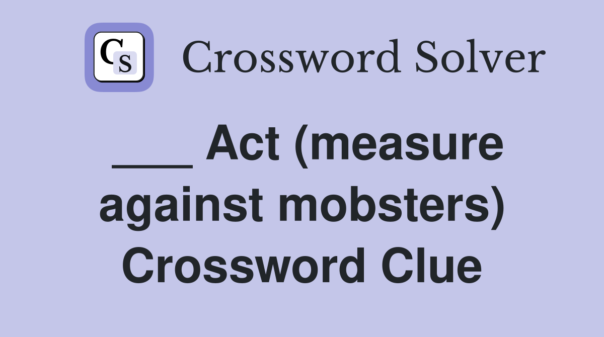 Act (measure against mobsters) Crossword Clue Answers Crossword Solver
