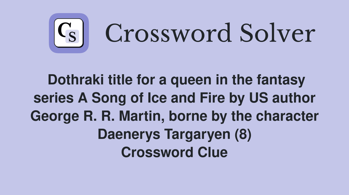 Dothraki title for a queen in the fantasy series A Song of Ice and Fire