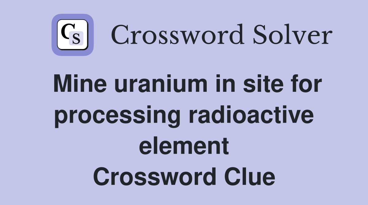 radioactive element Crossword Clue: 15 Answers with 1 9 Letters