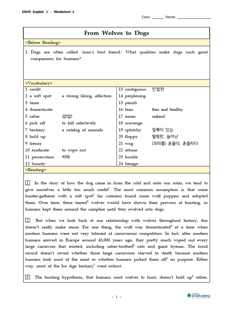 Wolves Student Worksheet Part 2 1 S t u d e n t W o r k s h e e t