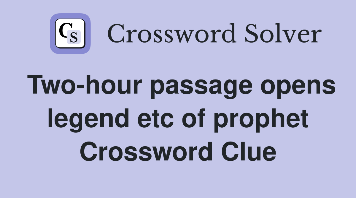 Two hour passage opens legend etc of prophet Crossword Clue Answers