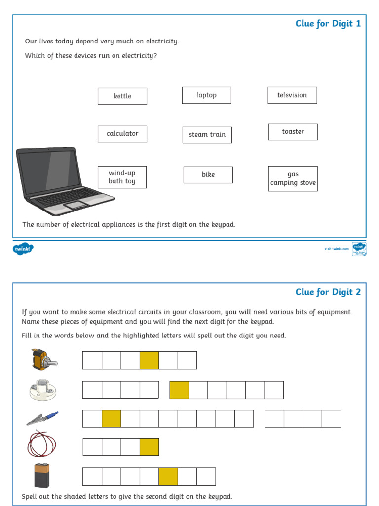 Escape the Power Station Clue Cards PDF Electricity Switch