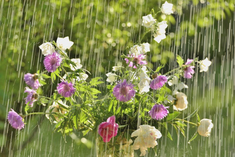 Summer Rain and Flowers of Echinacea Stock Photo Image of summer