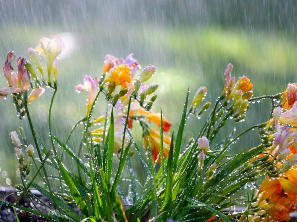 Free Green Flowers Rain Background Images Background Of The Rainy