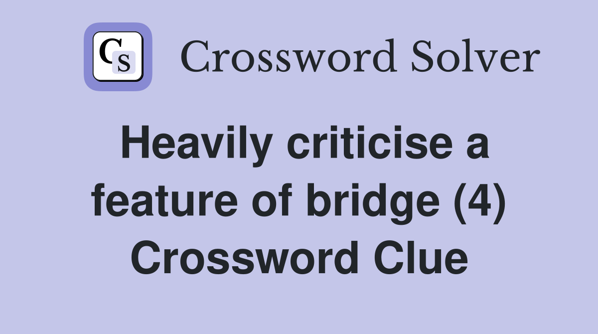 Heavily criticise a feature of bridge (4) Crossword Clue Answers