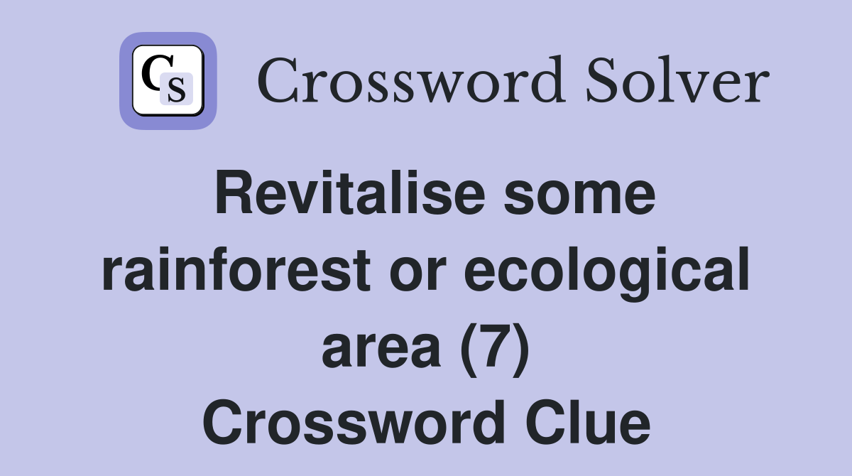 Revitalise some rainforest or ecological area (7) Crossword Clue
