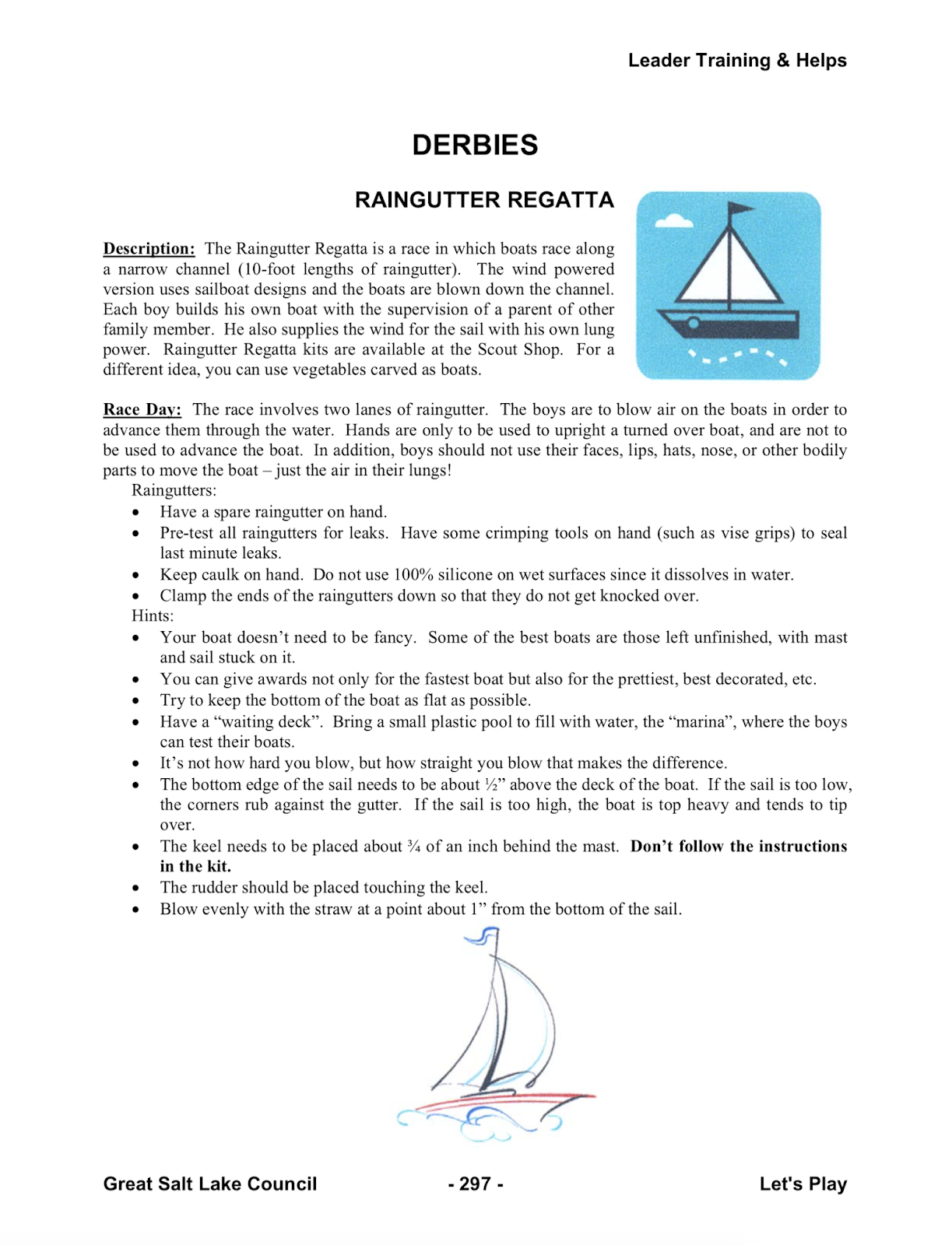 Akela #39 s Council Cub Scout Leader Training: Raingutter Regatta ~ Great