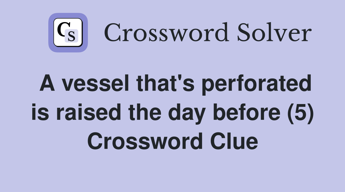A vessel that #39 s perforated is raised the day before (5) Crossword