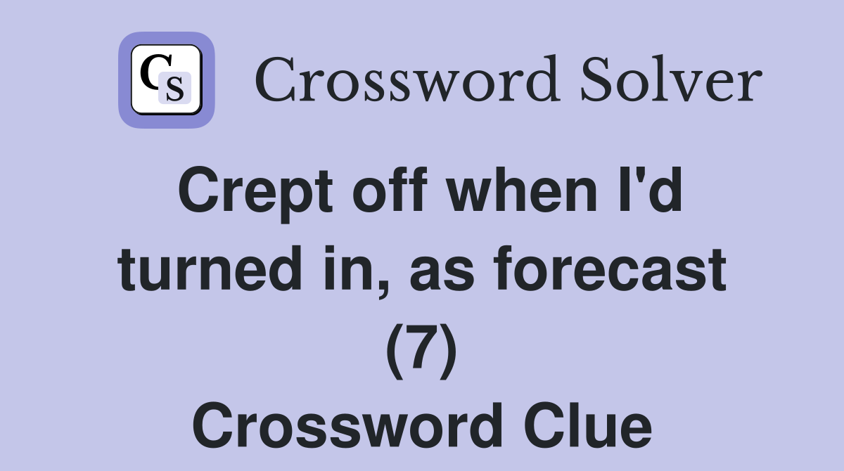 Crept off when I #39 d turned in as forecast (7) Crossword Clue Answers
