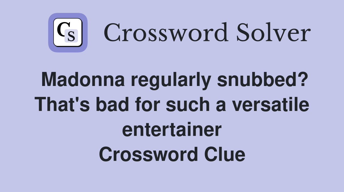 Madonna regularly snubbed? That s bad for such a versatile entertainer