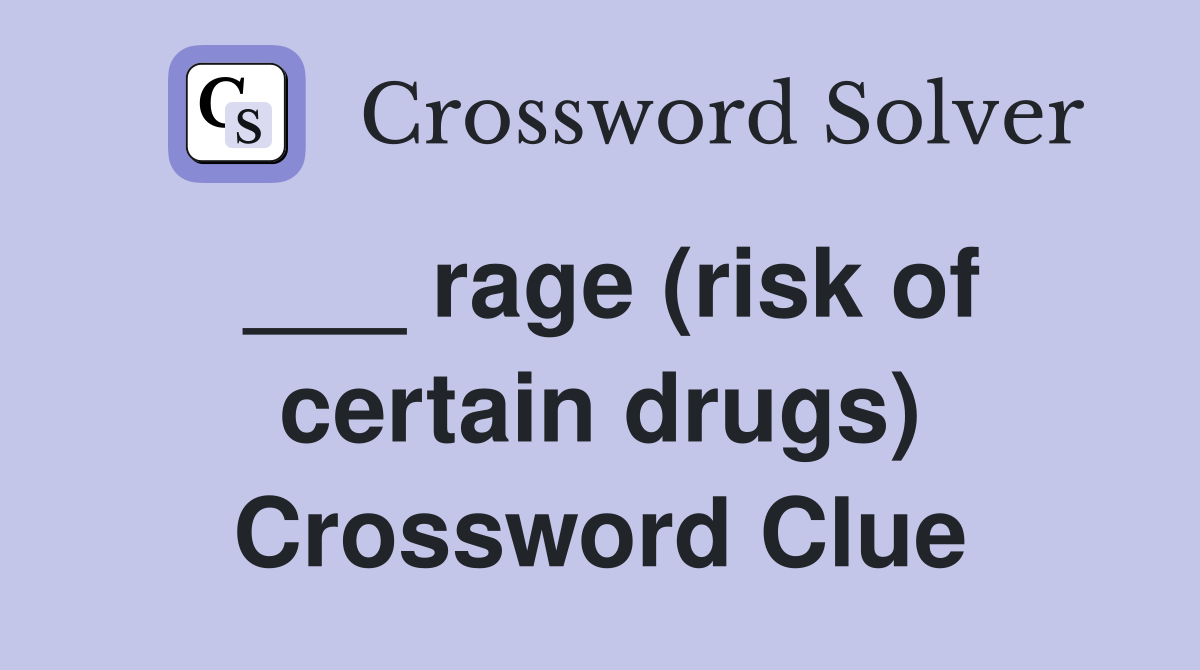 rage (risk of certain drugs) Crossword Clue Answers Crossword Solver