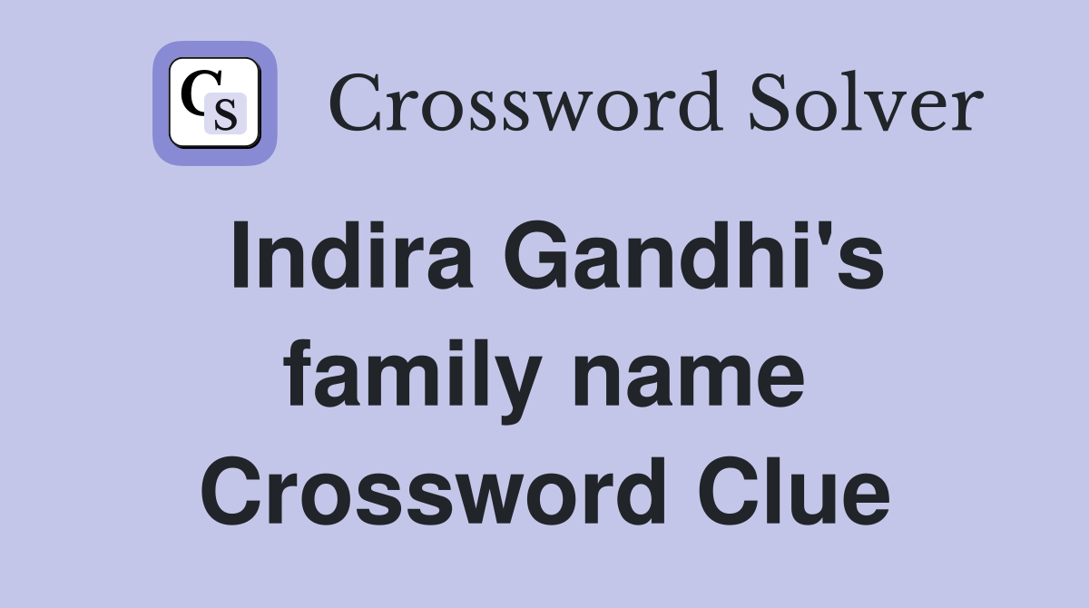 Indira Gandhi s family name Crossword Clue Answers Crossword Solver
