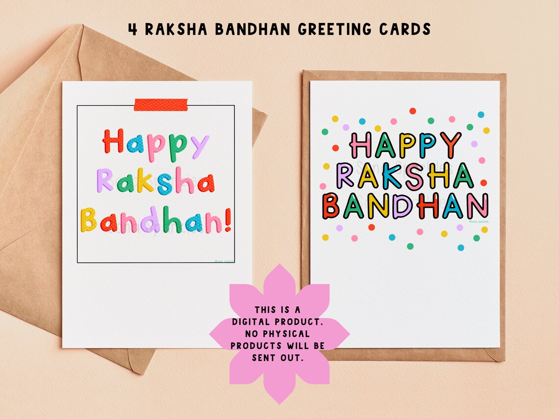 4 Raksha Bandhan Cards Printable Instant Download Raksha Bandhan Gifts
