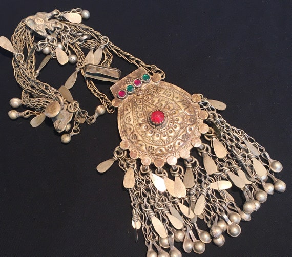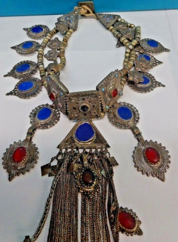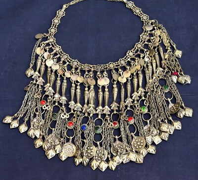 Big Afghan Kuchi Fish Necklace Long Chain Ethnic Dance Boho Tribal Bib
