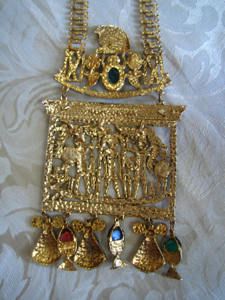 Vintage Diorios Gold Tone Enamel Egyptian Revival Necklace Etsy