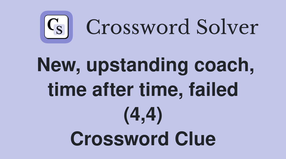 New upstanding coach time after time failed (4 4) Crossword Clue