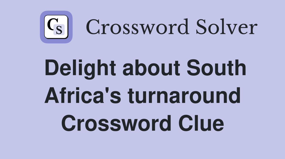 Delight about South Africa #39 s turnaround Crossword Clue Answers