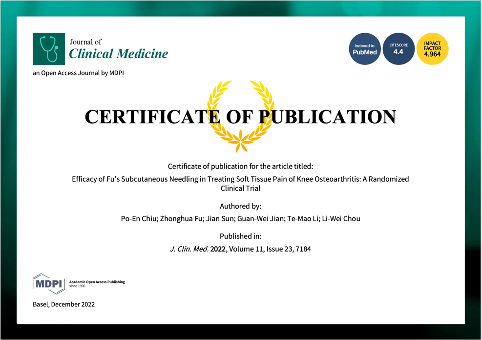 浮针史上最高分 关于膝关节疼痛的论文发表在国际权威期刊 临床 疗法 试验