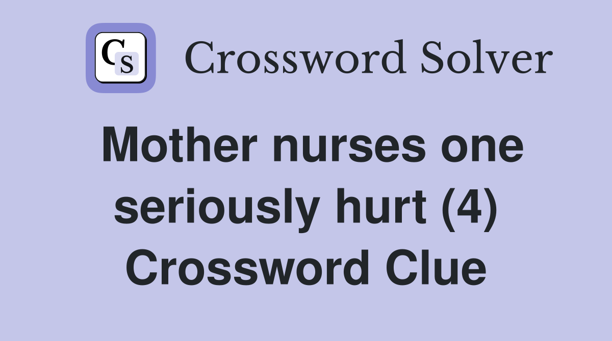 Mother nurses one seriously hurt (4) Crossword Clue Answers