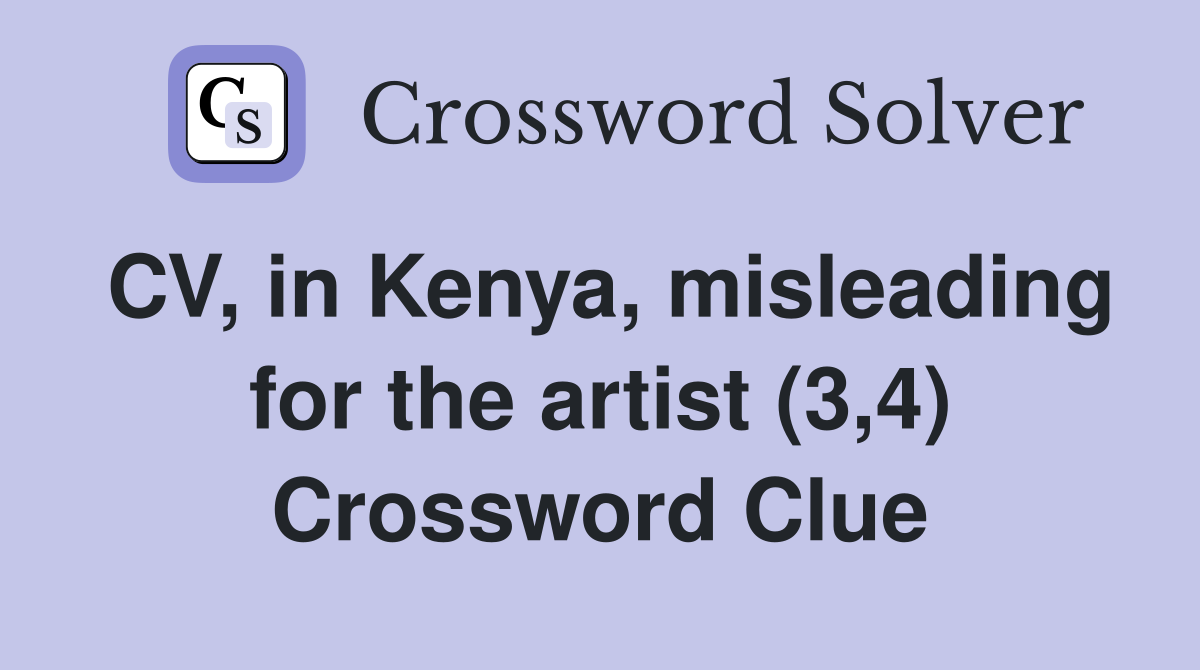 CV in Kenya misleading for the artist (3 4) Crossword Clue Answers