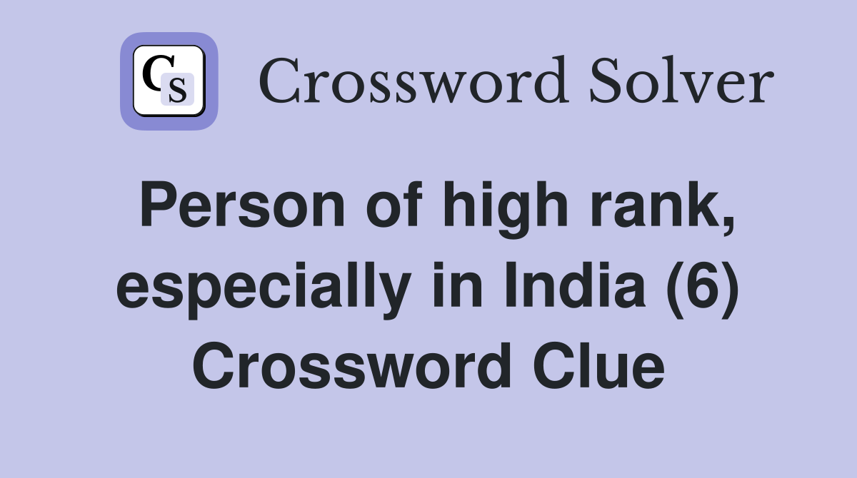 Person of high rank especially in India (6) Crossword Clue Answers