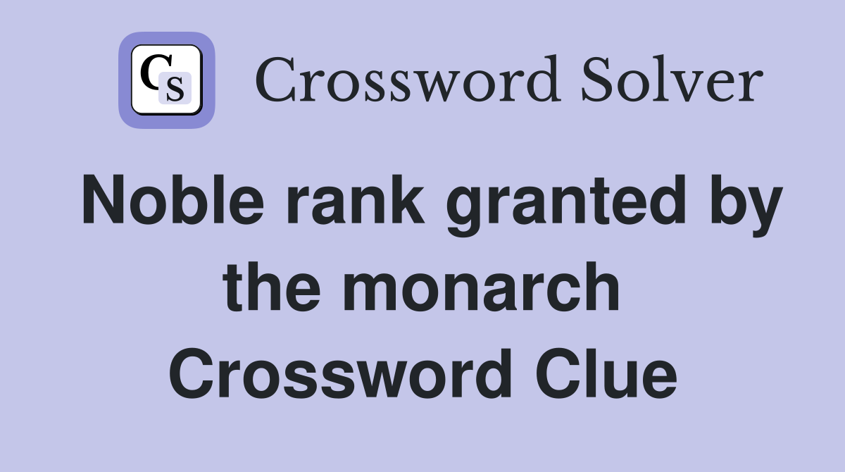 Noble rank granted by the monarch Crossword Clue Answers Crossword
