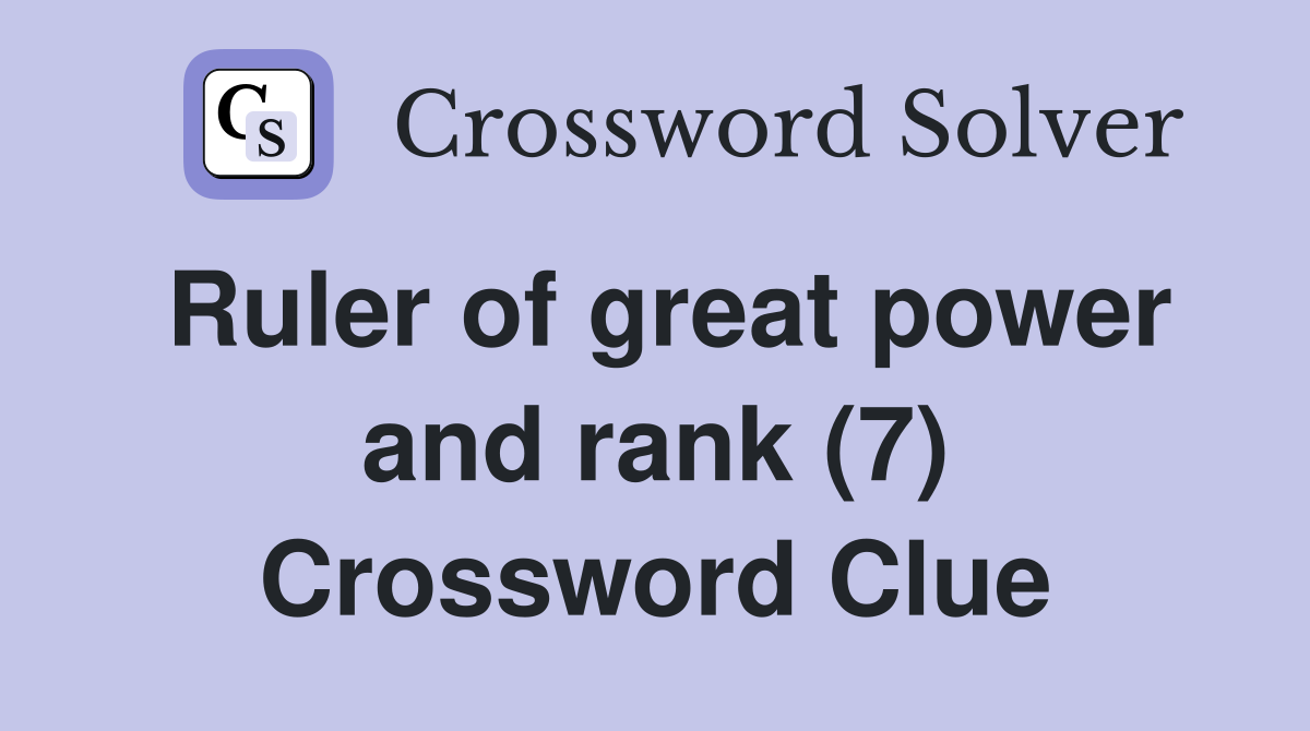 Ruler of great power and rank (7) Crossword Clue Answers Crossword
