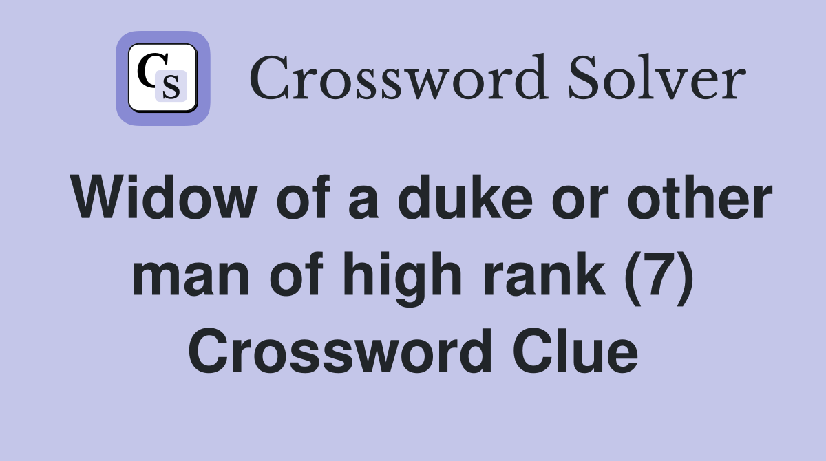 Widow of a duke or other man of high rank (7) Crossword Clue Answers